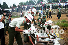 銷毀假冒軍車現(xiàn)場