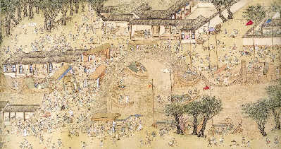 仇英的《清明上河圖》(局部)以明代蘇州城為背景,描繪了明代江南城市的繁華圖景