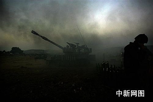 資料圖:7月15日,以色列軍人在以黎邊境監(jiān)控著自動化火炮向黎巴嫩真主黨目標(biāo)發(fā)射155毫米炮彈。