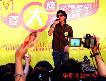 由 「V」音樂臺主辦的“零距離”謝霆鋒與北京歌迷見面會,17日在北京恒基中心舉行。上千名年輕歌迷將演出場地圍團圍住,聆聽謝霆鋒演唱的《謝謝你的愛1999》和《只要為你活一天》等歌曲。中新社記者:錢興強