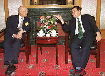 遼寧省委副書記張行湘八月五日晚在沈陽市遼寧賓館會見了臺灣“促進中國現(xiàn)代化學(xué)術(shù)研究基金會”董事長王升(左)夫婦及其隨行人員,并一起共進了晚餐。中新社記者 趙振清 攝