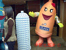 27個國家和地區17日同步公布2000年杜蕾斯全球性調查報告結果,香港晉級為亞洲第二最佳情人,充分反映現代人的性觀念和態度,安全套公仔在記者會上宣傳正確的性愛觀念。中新社傳真洪少葵攝