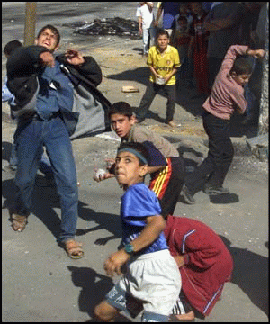 不少巴勒斯坦青少年加入沖突,向以軍投擲石塊。