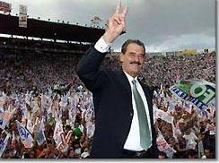 墨西哥當選總統福克斯今天就職(附圖) 2000年12月1日 17:06 ![]() 中新網北京12月1日消息:墨西哥當選總統福克斯將于今天宣誓就職,他重申,他將使墨西哥發生巨大變化。墨西哥在過去71年來都在革命路線黨的統治之下。 將有二十多名政府首腦參加福克斯的就職儀式。作為行動黨的領導人的福克斯是去年七月當選為墨西哥新總統的。福克斯表示他將與貧窮、毒品、腐敗現象作斗爭,并盡快與齊亞帕斯游擊隊達成協議。目前有5千萬墨西哥人生活在貧困線以下。 目前革命路線黨在500席的議會里仍控制著211席,并控制了31個州中的19個。- |