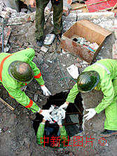 圖為搜尋人員進入塌樓找回貴重物品。中新社圖片 作者:潘勁松