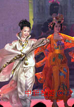 演唱蘇軾詞《水調歌頭、明月幾時有》.為慶祝澳門回歸一周年,中央電視臺心連心藝術團十一日晚在澳門蓮花廣場舉辦“流光溢彩濠江情”文藝晚會,圖為演唱蘇軾詞《水調歌頭、明月幾時有》。中新社傳真 宗金柱 攝
