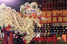 澳門體育界慶祝澳門回歸祖國一周年表演晚會17日晚在塔石球場舉行。澳門武術總會表演醒獅助興。中新社記者 滿會喬攝
