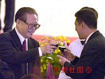 國家主席江澤民十九日出席澳門特別行政區(qū)成立一周年慶祝晚宴,并與行政長官何厚鏵舉杯祝賀。中新社傳真 宗金柱攝