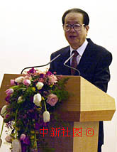 國務院副總理錢其琛十九日在澳門特區成立一周年慶祝晚宴上發表講話。中新社傳真 宗金柱 攝