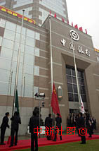 中國銀行澳門分行總經理朱赤等150名中高層人員20日在中銀大廈外舉行升旗禮。這是中國銀行在澳門舉行的第二次升旗儀式。中新社傳真洪少葵攝