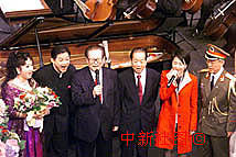 江澤民主席與錢其琛、于永波以及香港歌唱家莫華倫同臺(tái)高歌。中新社傳真 滿會(huì)喬 攝