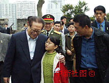 新聞組照:江澤民與小姑娘丘芷慧親切交談
