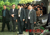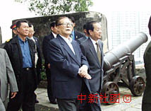 國家主席江澤民、國務院副總理錢其琛、澳門特別行政區行政長官何厚鏵20日下午參觀澳門大炮臺。中新社傳真 滿會喬 攝