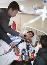 河南洛陽特大火災中的七名受傷者目前傷情穩定,已經脫離危險的受傷者立即成為媒體采訪的焦點。中新社圖 慎重 攝