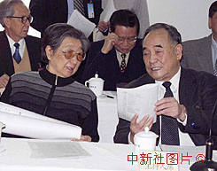 全國政協副主席錢正英(左)九日參加關于“西電東送”提案討論會時說,“西電東送”具有戰(zhàn)略意義。作者:關向東