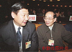 新任福建省省長習近平(左)和新任重慶市市長包敘定十日列席九屆全國人大三次會議第四次全體大會。作者:李剛