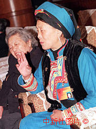 來自四川省阿壩州的全國人大代表楊松英(羌族)十三日在小組討論會上發表對家鄉建設的意見。作者:王麗南