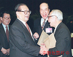 國家主席江澤民四日參加全國政協(xié)港澳聯(lián)組會,并與委員們一起熱烈交談。作者:宗金柱