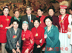 李鵬委員長八日參加全國人大新疆代表團討論會時,與新疆的各民族女代表合影。作者:王麗南