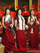 將在中央電視臺春節(jié)聯(lián)歡晚會上演唱的藏族三姐妹,在彩排中演唱她們獨(dú)特的姐妹組合和金屬般的聲音。中新社記者 王麗南 攝