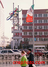 北京街頭的申奧氣氛日漸濃厚,由北京紅旗廠印制的7000面申奧彩旗遍布京城的每個角落。中新社記者 張勤 攝