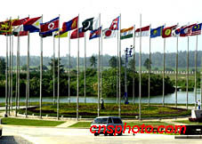 中國海南省一座名叫博鰲的小漁村景色秀麗,如今被選作亞洲論壇的永久性會址。漁民改作工人正在升掛萬國旗,歡迎亞洲貴賓二月下旬來此聚會。中新社記者 賈國榮 攝