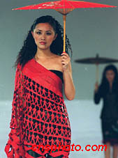 中國新絲路模特公司,二十二日晚在北京嘉里中心飯店,舉行赴德國服飾表演。圖為根據中國少數民族服飾創新設計的現代服飾作品。中新社圖 東方 攝