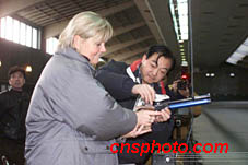 2月23日下午,國際奧委會評估團員到北京射擊場考察,國際單項體育組織代表埃爾斯·弗里斯曼在奧運冠軍中國著名射擊教練許海峰的指導下一試身手。作者:趙彤杰