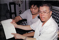 曾給李洪志做過闌尾切除手術的主治醫師、吉林省人民醫院副院長李英杰(右)講述當年為李洪志確診手術的情景。