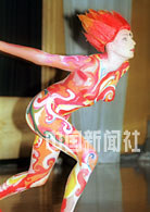 來自澳洲的代表團三月二日在香港舉行的第五十一屆圣迪斯哥國際會議上表演“赤裸”演繹身體化妝的美態。中新社傳真 任海霞攝