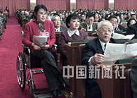 全國政協委員、著名殘疾青年張海迪出席三日在北京人民大會堂舉行的全國政協九屆四次會議。中新社記者 毛建軍 攝