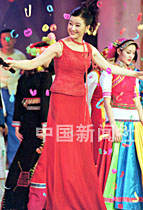 解放軍人大代表、青年歌唱家宋祖英,七日晚在人大政協(xié)聯(lián)誼晚會上登臺獻唱。中新社記者 錢興強 攝