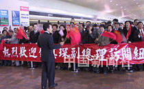 紐約當地華人華僑代表早早來到紐約拉瓜蒂國際機場,熱情迎接錢其琛副總理一行到來。錢其琛即將開始為期一周的美國之行,是美國新政府上臺后,兩國領導人的第一次正式會晤。此間輿論界推測,雙邊關系、臺灣問題等將是雙方洽商的重點。中新社圖 陳建 攝