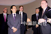 國務院副總理錢其琛當地時間十九日會見美國工商界人士時說,他明日將與美國主流媒體負責人共進早餐。美國大公司的老板們對錢其琛開玩笑說:“那他們肯定會提很多問題難為你的。”賓主聽后大笑。中新社圖 陳建 攝