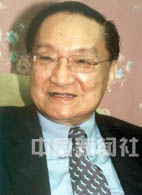 著名武俠文學大師金庸先生,二十六日在京出席四十集電視連續劇《笑傲江湖》首播式。中新社記者 錢興強 攝