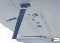 圖一:美機左機翼外側撞擊我飛機,美機機翼下的天線損壞。
