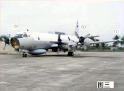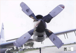 圖二:美機左二發動機螺旋槳撞擊我機,美機螺旋槳受損變形。
