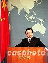 中國外交部發言人朱邦造四月三日在北京的記者招待會上,談到美國偵察機一日撞毀中國軍用飛機事件時說,中國海軍正在全力搜救我方落海飛行員。中新社記者 鄒憲 攝