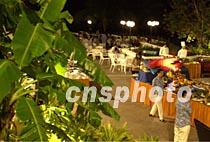 距離美國軍用偵察機撞毀中國戰機海域很近的海南省三亞市,度假勝地亞龍灣五星級凱萊酒店連日客滿,月夜露天餐廳服務照常。中新社記者 賈國榮 攝