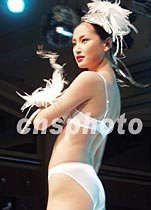 九日晚,在北京嘉里中心飯店舉行的“時尚大蓬車”內(nèi)衣時裝秀,吸引了來自京城各處的觀眾,著名內(nèi)衣品牌“黛安芬”展開中國市場的大型推廣活動。圖為名模趙俊模特展示內(nèi)衣新款作品。中新社記者 錢興強 攝