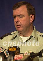 美國駐華使館武官席樂高準(zhǔn)將十一日晚十時四十分在海口文華大酒店新聞發(fā)布會上說,他已同中方見面并得到釋放機組人員的細節(jié)和具體要求,美方需要研究考慮。中新社記者 賈國榮 攝