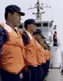 圖文:中國海軍艦艇為王偉犧牲鳴笛致哀 2001年4月15日 20:08 ![]() 海軍官兵面向南海默哀。