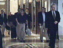 美國談判代表一行八人中的六人,于二十日上午離開北京住地乘美國航班飛機(jī)回國。