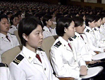 中國海軍女兵與解放軍四總部官兵代表兩千余人,二十四日在北京參加中央軍委授予王偉烈士“海空衛士”榮譽稱號命名大會。