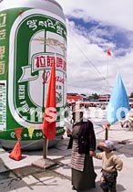 圖:“拉薩啤酒”以巨型酒瓶作廣告推銷新產(chǎn)品