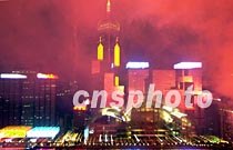香港五月八日晚舉行祝賀“2001年《財富》論壇”煙花匯演,異彩紛呈的煙花使主會場的會展中心呈現出夢幻的感覺。中新社圖 洪少葵 攝
