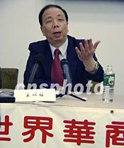 圖文:世界華商大會誠邀美國華商赴南京共襄盛舉 2001年05月23日 07:02 ![]() 美東時間21日下午,中華全國工商業聯合會副主席王以銘在紐約舉行的新聞發布會上說:第六屆世界華商大會將于九月十七日至十九日在中國江蘇南京召開。預計有約五千名海外華商、中國知名企業家和經濟界人士與會。中新社記者 陳建 攝
