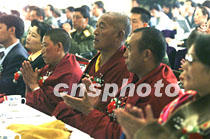 中國宗教界人士五月二十三日在拉薩出席紀(jì)念西藏和平解放五十周年座談會。中新社記者 滿會喬 攝