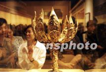 為紀念西藏和平解放五十周年,《雪域珍藏——西藏文物精華展》今天在上海博物館開幕。圖為展品吸引眾多上海市民觀看。中新社圖 姜煜 攝