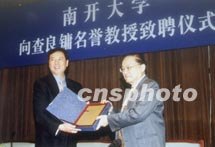 圖文:金庸受聘為南開大學(xué)文學(xué)院名譽教授 2001年5月28日 10:42 ![]() 著名武俠小說家金庸先生五月二十八日受聘為南開大學(xué)名譽教授。圖為南開大學(xué)校長侯自新(左)向金庸先生(右)頒發(fā)聘書。中新社記者 孫志民 攝